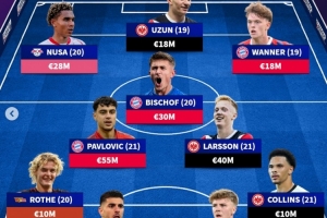 体育资讯7月5日讯 《转会市场》统计了德甲U21球员身价最贵阵容,拜仁4将、法兰克福3人在列。
